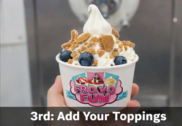 “Pick a cup, start swirling, and create it your way. Mix and match your favourite flavours, then go all in at the toppings bar — fruits, crunch, and sauces included. Weigh it, pay for it, and enjoy every bite.”
